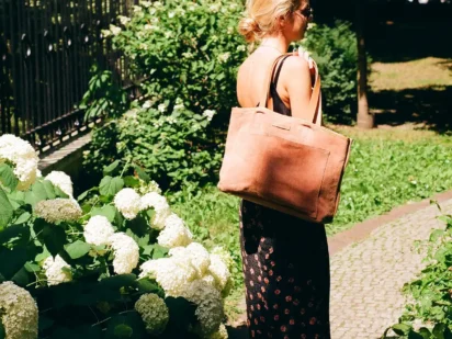 Uszy Lezamy są wykonane z podwójnej, licowej skóry w kolorze lamówki i są doszyte do torby. Dno torby jest usztywnione drugą warstwą zamszu, dzięki czemu torba jest bardziej wytrzymała. Zamsz, z którego uszyto torbę, jest lejący i miły w dotyku, a sama torba swobodnie układa się na ramieniu, nie ograniczając ruchów.