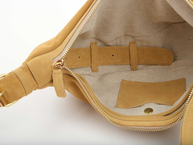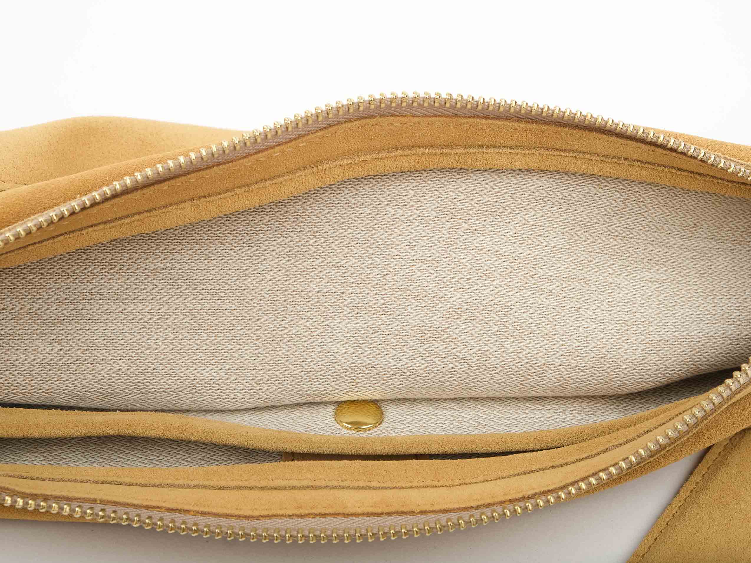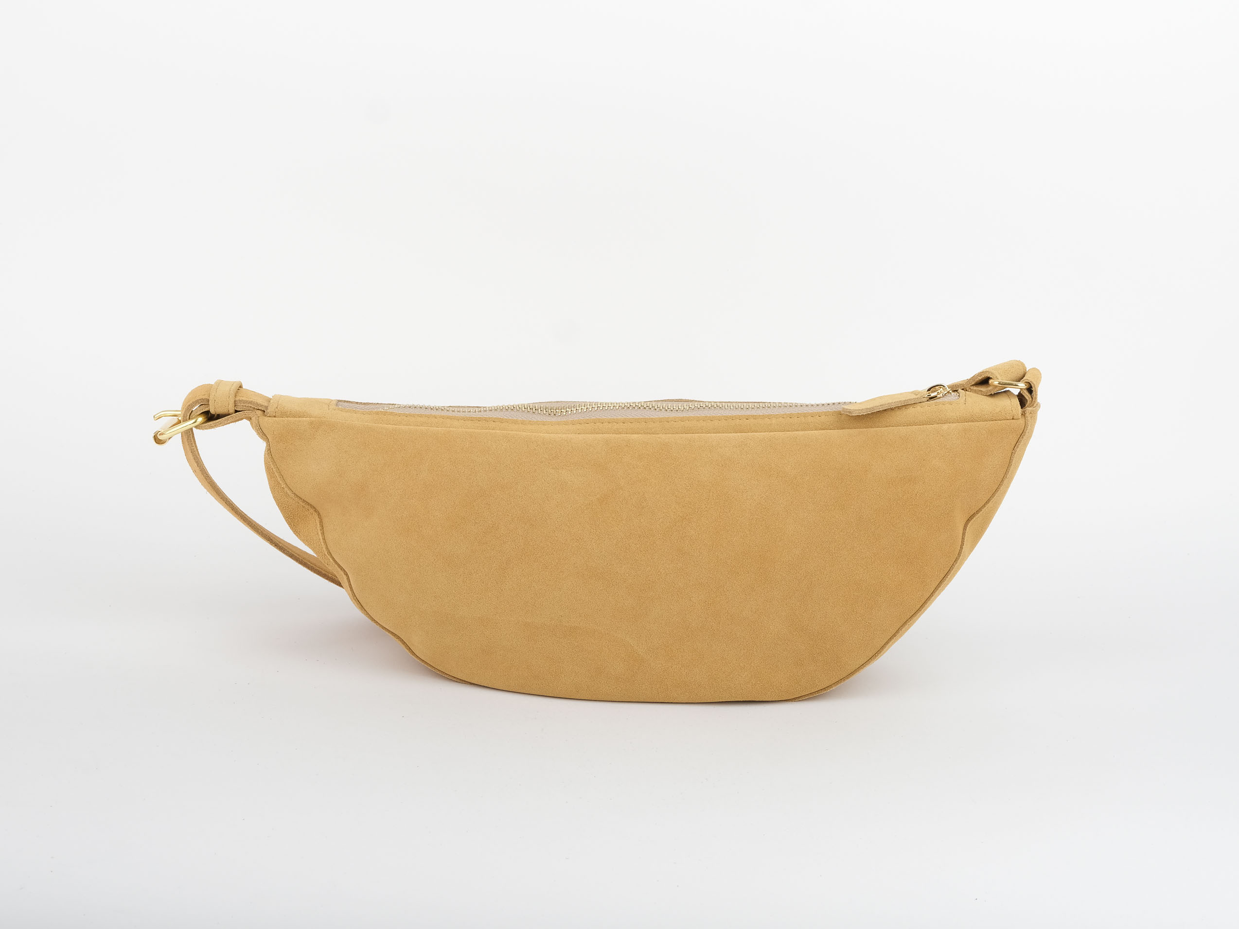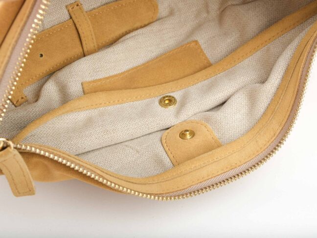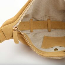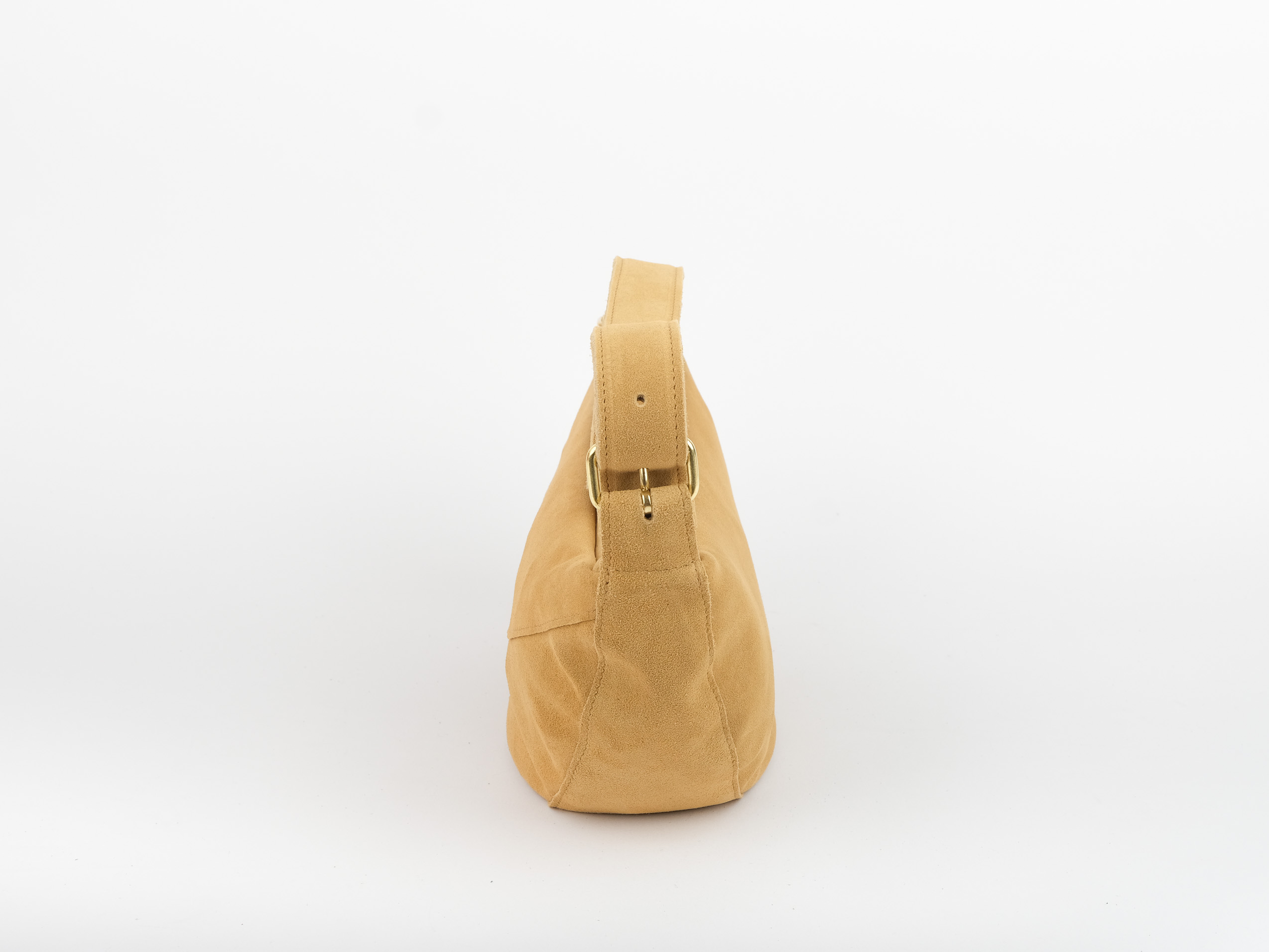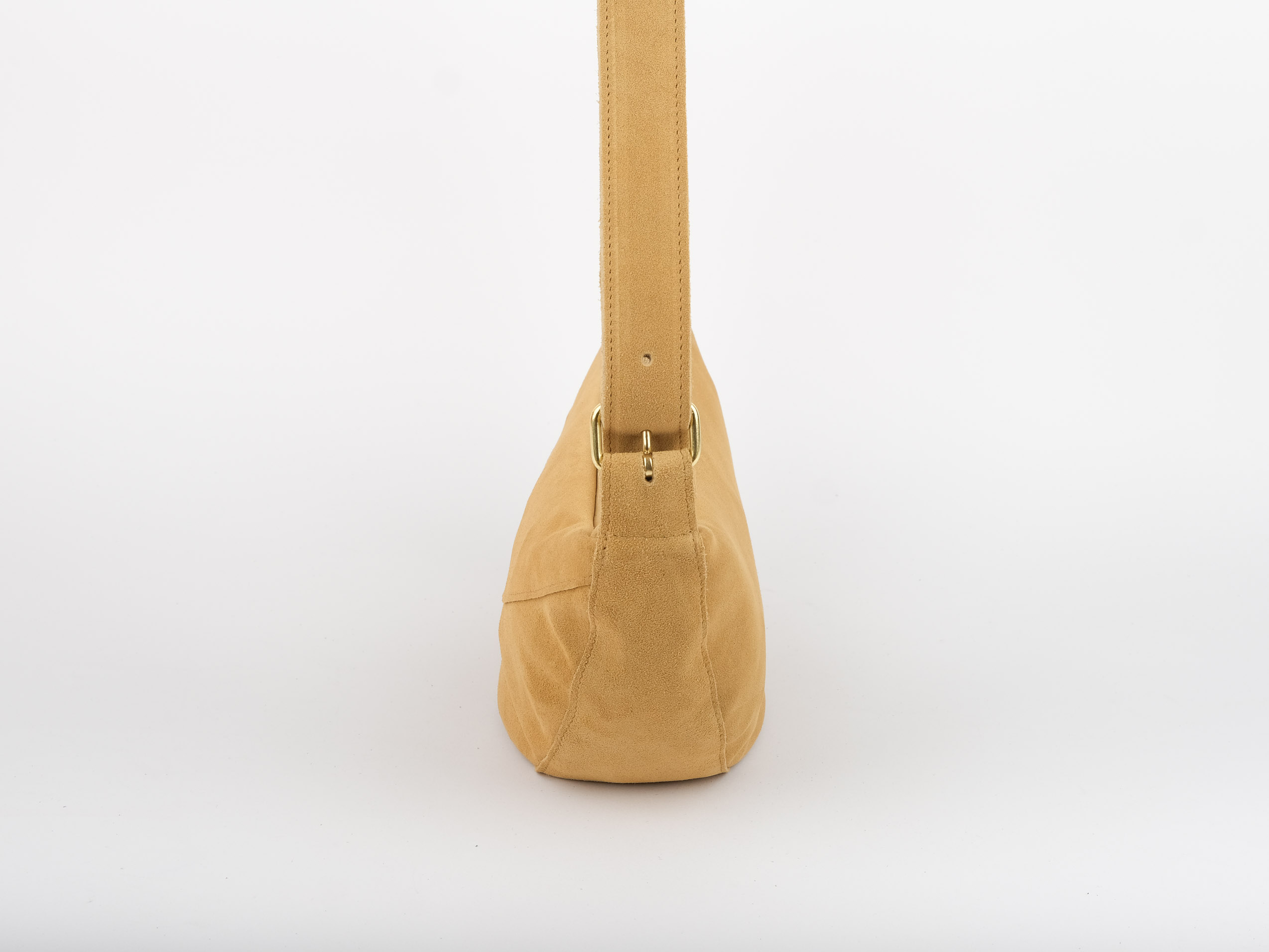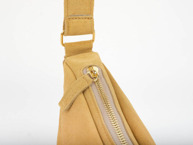 Nerka zamszowa w kolorze piaskowym, wykonana z najwyższej jakości skóry zamszowej z Włoch. Pomieści format A5, 0,5- 1 l butelkę oraz mnóstwo innych drobnych przedmiotów. Nerka Sierra jest zaprojektowana, aby nosić ją głównie przez ramię, ale z powodzeniem można ją również założyć na ramię.